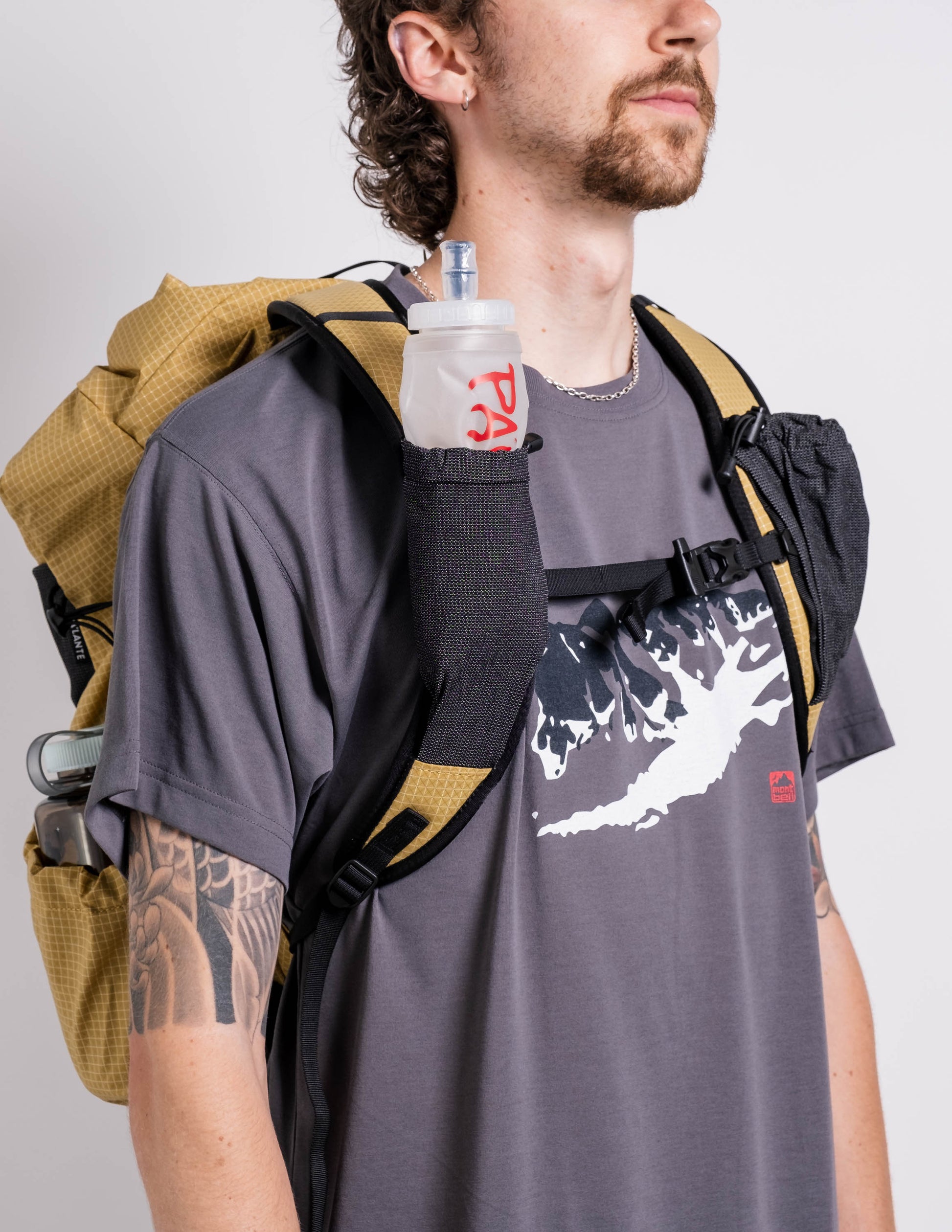 The V2 pack is Pa'lante's all-rounder thru hiker. This frameless bag features a roll top and cinch closure, a large interior compartment, stackable hipbelt and designated stake pocket. Crafted from a durable and water-repellent ripstop.