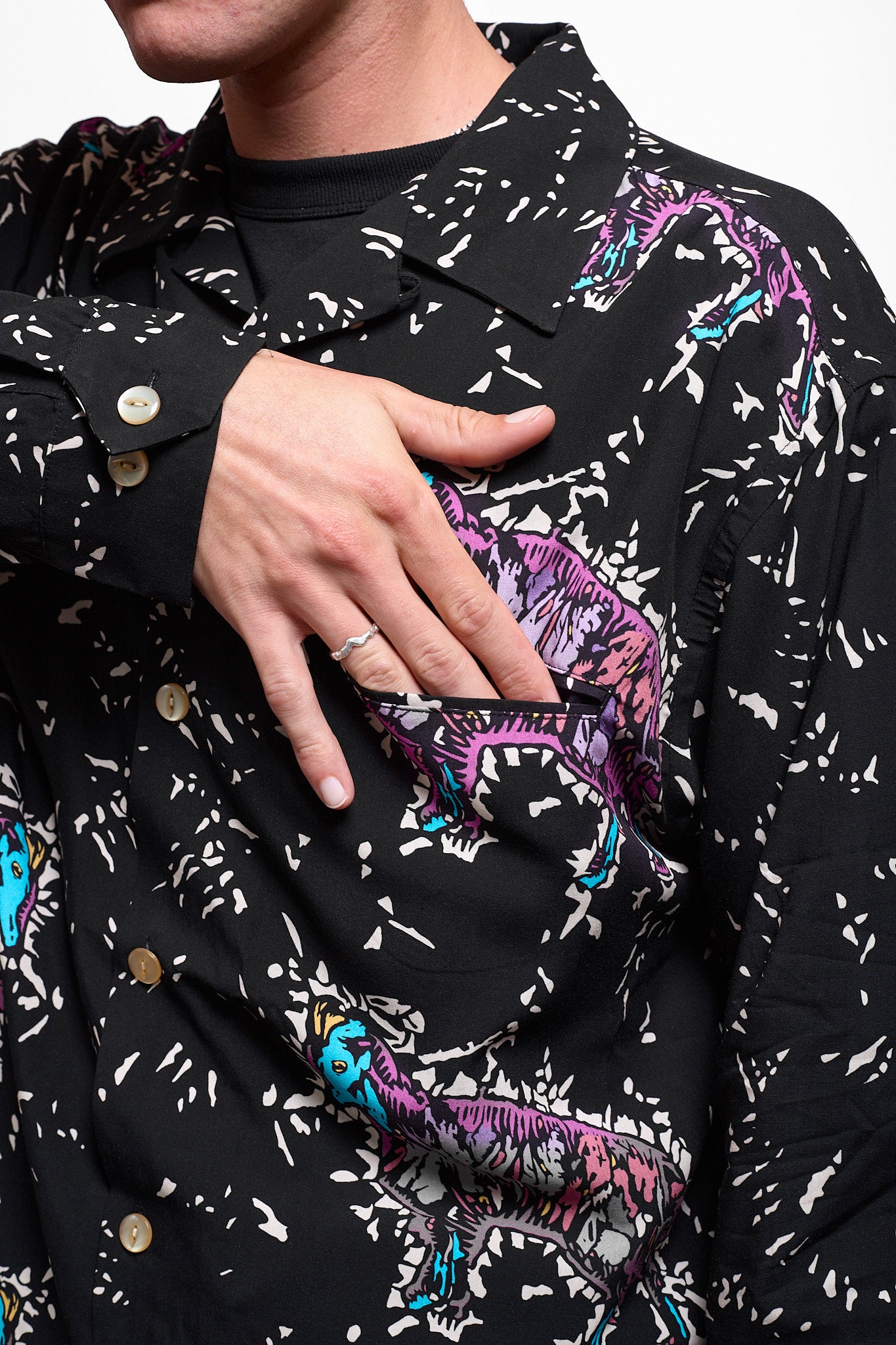 Part of Nanga's new Holi sublabel, this button up features a wild goat print with neolithic vibes. It's cut from a smooth, quick-drying fabric and sports a roomy fit. Mother of pearl buttons finish things off.