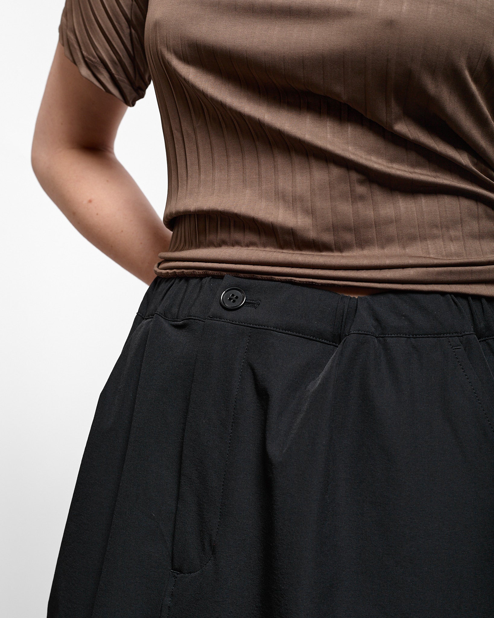 A sleek, beautiful everyday skirt. Its light DWR coating make it the perfect choice to wear in a shower or drizzle, and its premium stretch fabric gives it a lovely soft touch. It has pockets, too!
