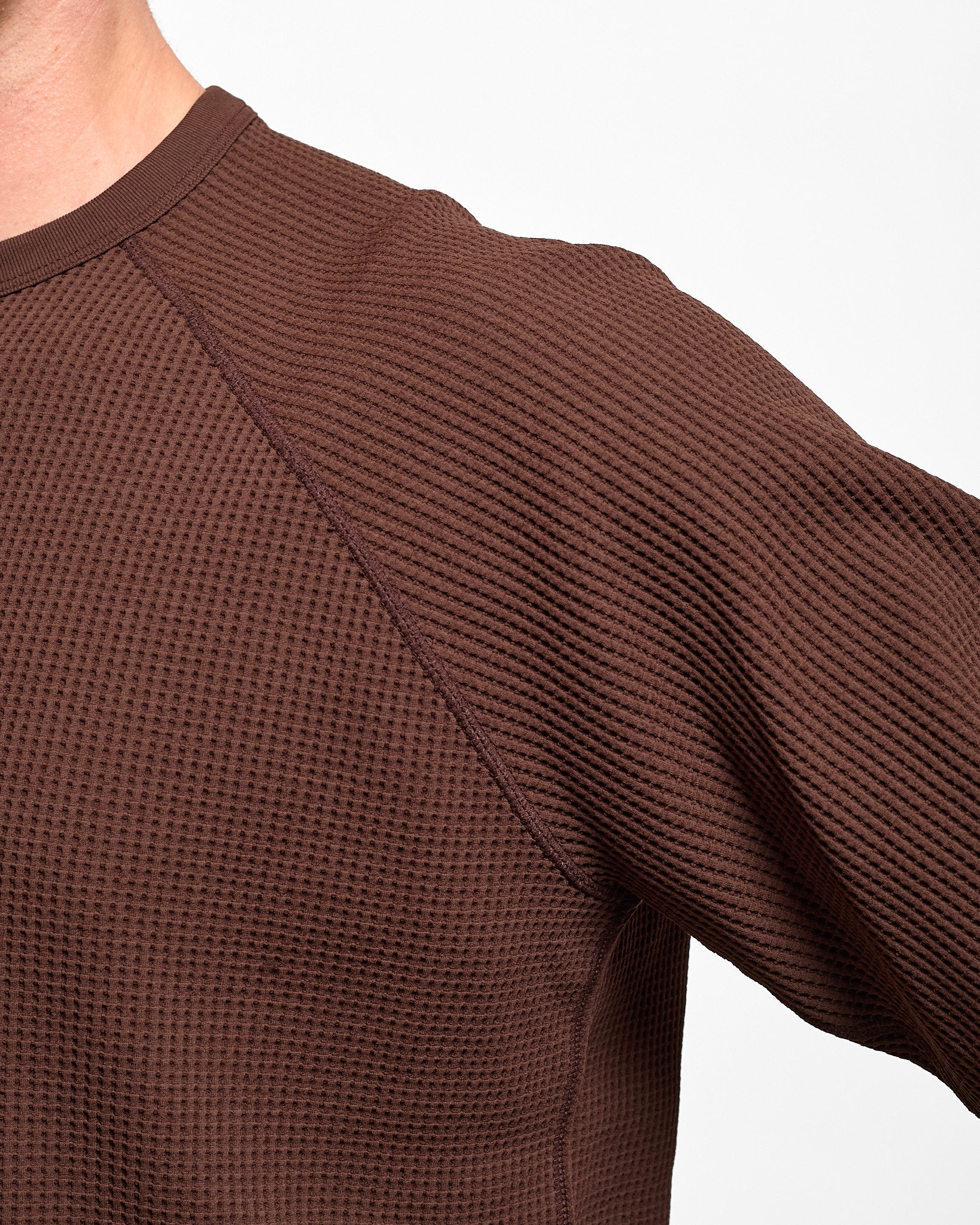This longsleeve is made from a lux and soft Solotex® waffle thermal fabric—it possesses a considerable volume while remaining lightweight. Essentially, it feels amazing and still performs when things get sweaty or cold.