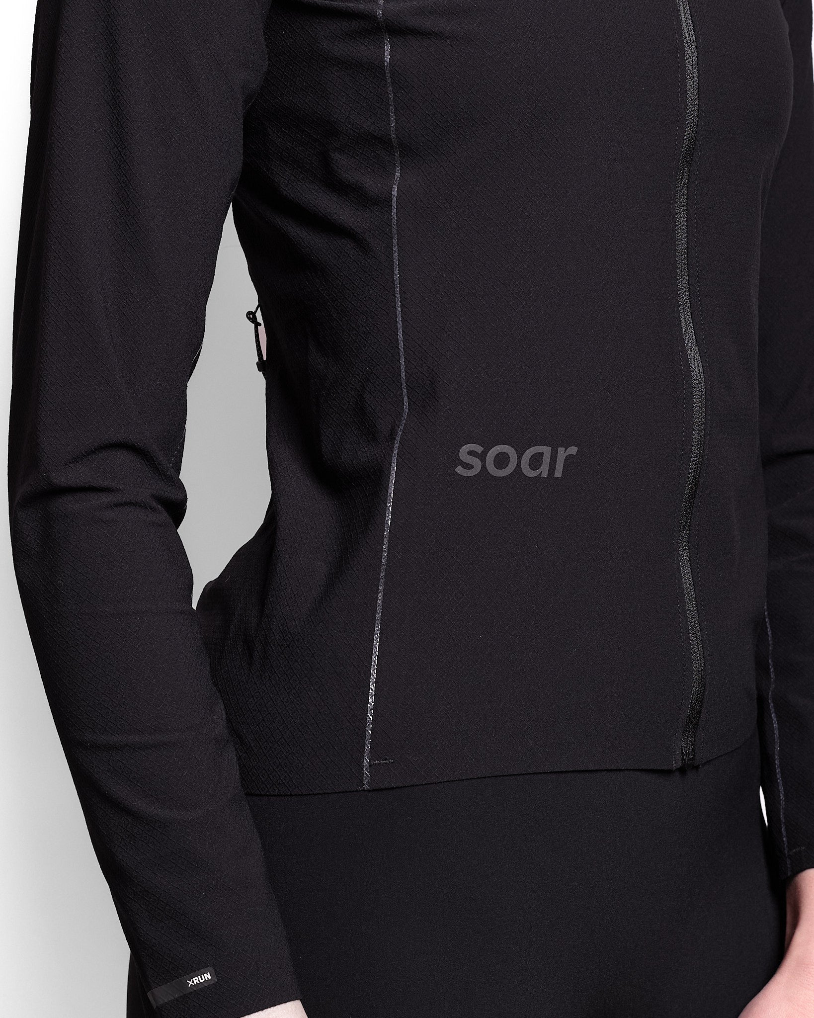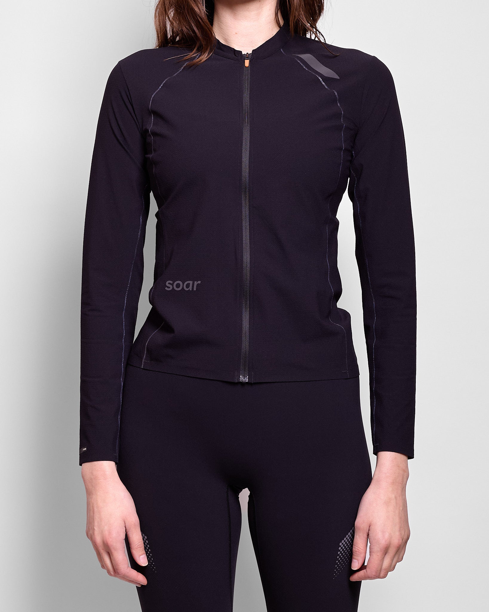 This is a top for cold starts at a brisk pace. When you want to stay warm and dry while squeezing in an effort before the day starts. Soar has built the Tempo Top using a lightweight textured French stretch fabric that wicks sweat and feels great against the skin at speed. This is the answer for your layering dilemmas.
